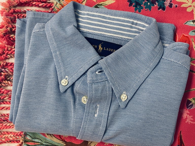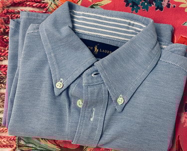I had ordered a dreamy Ralph Lauren stretch piqué button down shirt in light blue from Vinted (see picture below) and it finally arrived in the mail. What a perfect timing with this air of RL inspiration that I'm having! Now I can emulate some of Ralph's relaxed and cool allure myself while wearing this shirt.🤭